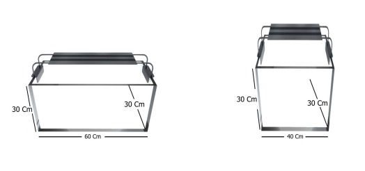 Aquarium di atas memiliki kapasitas volume yang sama. Untuk menghitung volume air rumusnya adalah ; Volume = P(cm) x L(cm) x T(cm) / 1000