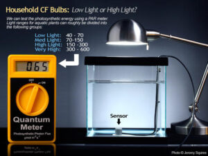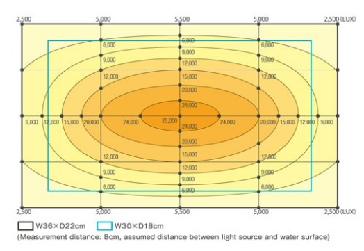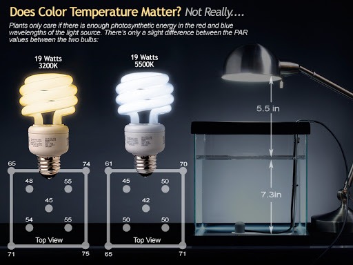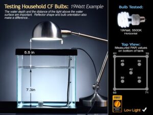 Beberapa penelitian mengatakan bahwa cahaya pada bagian dasar aquarium (substrate) tidak boleh kurang dari 3000 Lux.