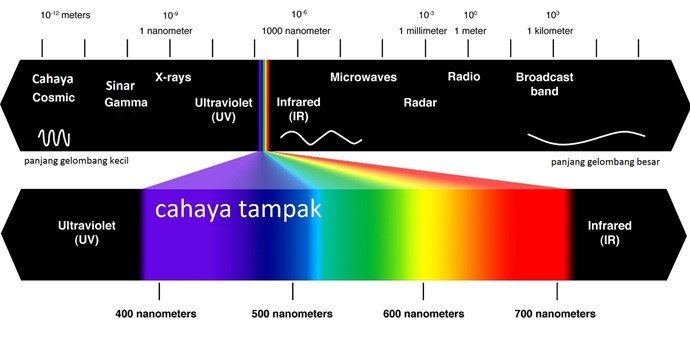 Cahaya adalah gelombang elektromagnetik yang menstimulasi retina mata manusia. Seperti pada umumnya gelombang lainnya, cahaya juga mempunyai panjang gelombang dan frekuensi. Jajaran panjang gelombang cahaya yang bisa dilihat manusia berkisar sekitar 400 nanometer(nm) sampai 700nm.